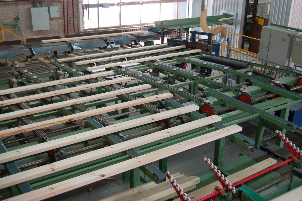 For planing work we use an automatic planing machine, with sorting and packaging lines, a Weinig Hydromat and a Waco 3000. Our specialists visually check and automatically sort the final products. This planing machine can operate at a speed of up to 120 m/min, and can plane solid natural wood with a width of up to 220 mm and a height of up to 120 mm.